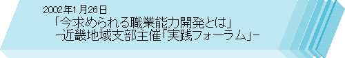 近畿地域支部主催の「実践フォーラム」を1月26日(土)の午後1時30分より大阪市中央区南本町の大阪商工会館6階会議室で開催いたしました。今回は実践教育訓練研究協会の早川会長をお招きし「今求めらている職業能力開発とは」と題して基調講演を行っていただきました。その後、その基調講演内容についてテーマを絞ってディスカッションを行い、活発な意見交換がなされました。さらに、最後の懇親会の席においても早川会長の基調講演に対する質疑、意見交換がなされ、有意義なフォーラムとなりました。参加者は34名でした。