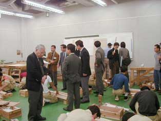 建築・デザイン系専門部会では、第2回「建築系ひとづくりフォーラム」を、1999年11月末、木造技能後継者の育成をめざす「東京建築カレッジ」にて開催した。 今回の集いでは、大規模職人組合が運営する「認定短大校」の訓練の実態、運営上の苦労や工夫、製作品、生徒の様子などをつぶさに見聞できた。 今回は、年末という事情もあり、参加者は若干少なめだったが、計2回の開催を通し、思った以上の反響があり、着実に一歩を踏み出したように思われた。 特に、業界の人材育成に関心を持たれる、企業、団体、実務者、教育・研究者、学生、マスコミなど、多岐多様な方々の積極的参加があり、既存の制度の垣根を越えた交流への渇望とフォーラムへの期待を実感した。 |