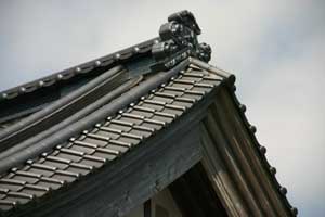 その後、三重塔で著名な「普門寺」(県指定有形文化財)境内を訪れた。参道には大木の気仙杉が多数そびえる。本堂は多彩な彫刻で埋められ、大工から左官、建具、彫刻、船まで何でもこなす気仙大工の技量が伺われた。三重塔は小ぶりだが、各層毎に軒裏意匠が異なる独特のものである。