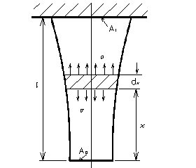 上端を太くし下端を細くして各横断面に生ずる応力が等しくなるような棒の形状を求めよ.
